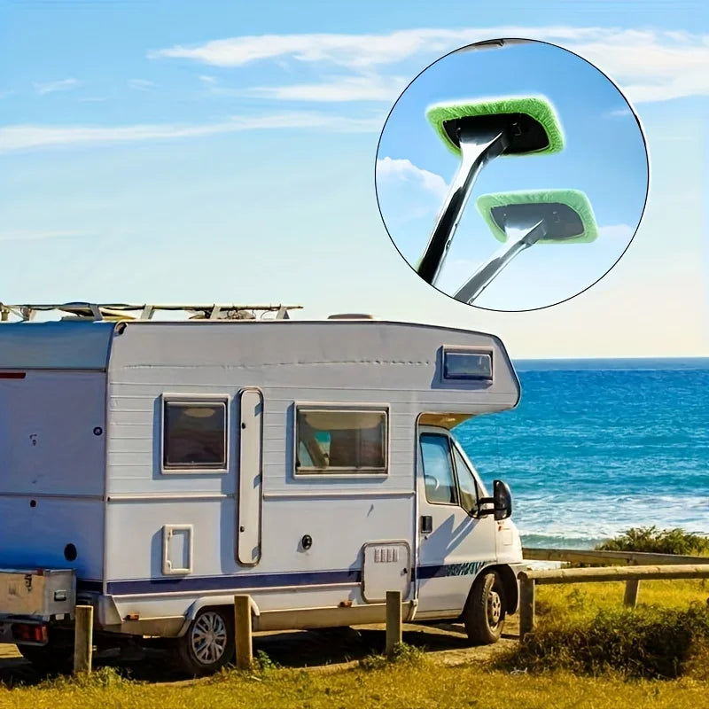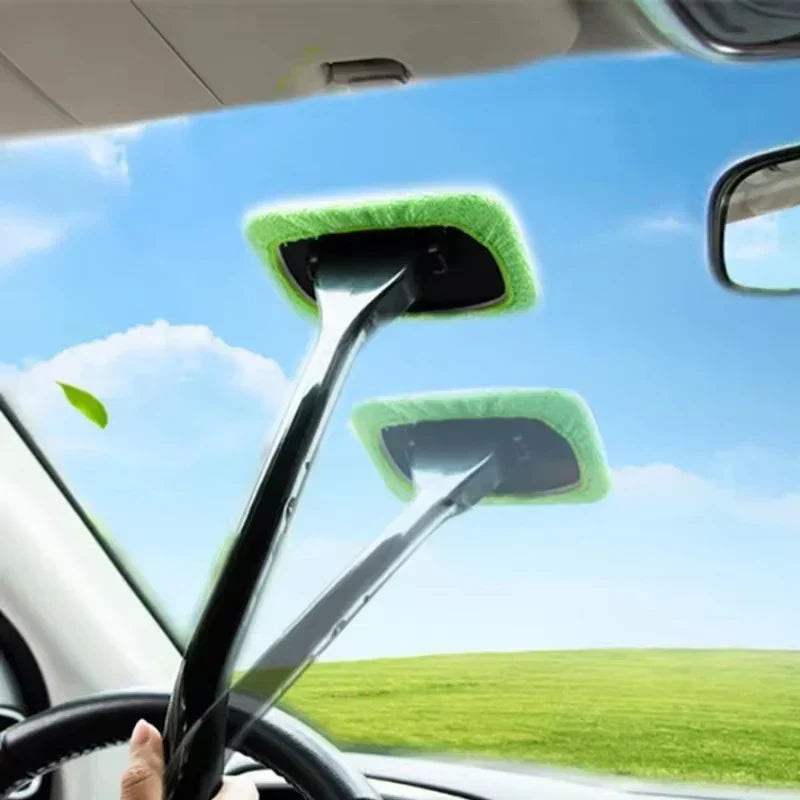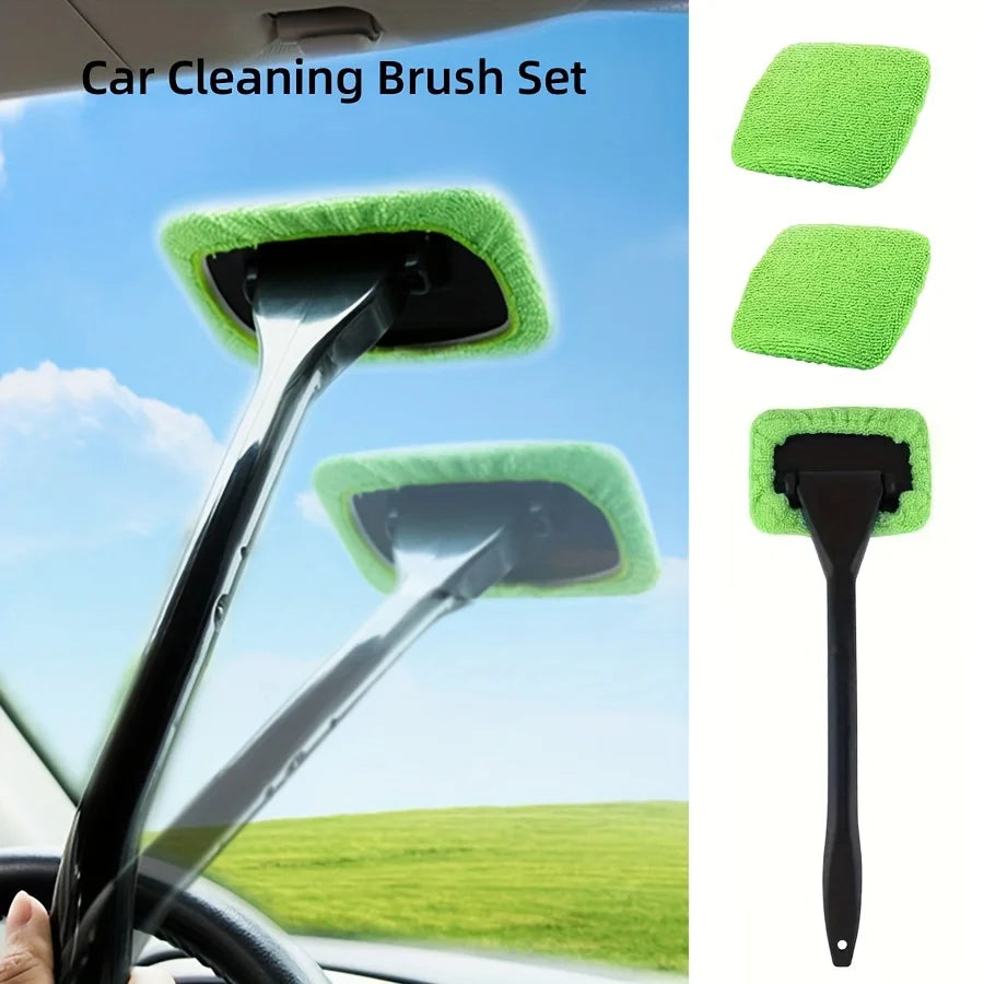 Car Window Cleaner with Long Handle – Microfiber Windshield Cleaning Brush Kit