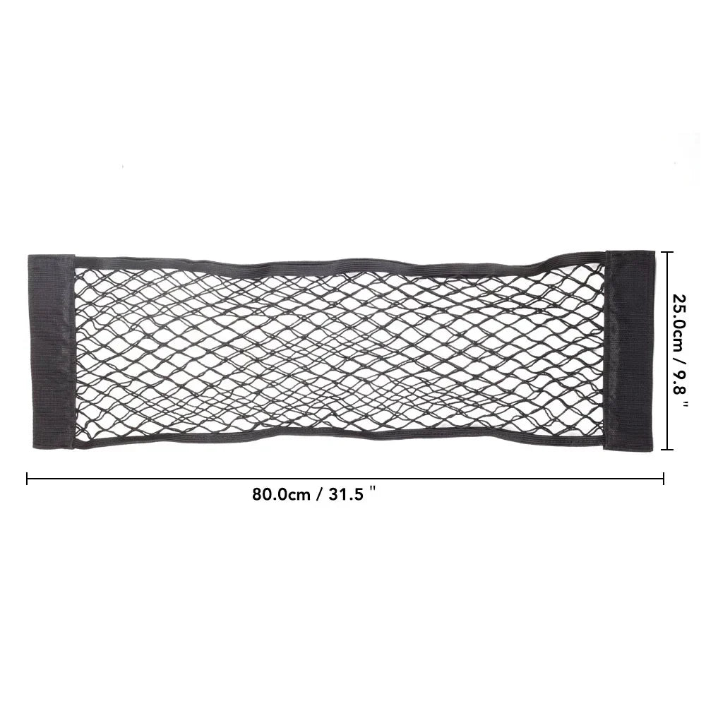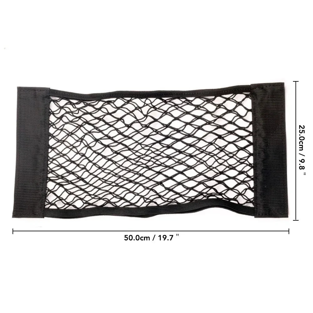 Car Back Seat Mesh Trunk Organizer – Elastic Net Pocket with Magic Sticker for Universal Storage